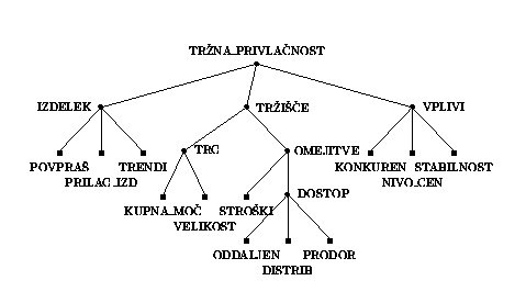 Drevo kriterijev za vrednotenje trzne privlacnosti proizvodov